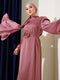| Name | Satinkleid mit Ballonärmeln und Rosenaccessoire, Farbe: Altrosa |