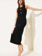 Ärmelloses, geschlitztes Camisole-Kleid, Schwarz