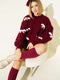 NameStrickpullover mit Bänderstickerei, Burgunderrot