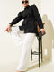 Schwarzes Hemd mit goldenen Knöpfen und Seilgürtel