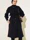 NameSchwarzer, zweireihiger, gefütterter Kaschmirmantel mit Gürtel