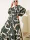 Halbgeknöpftes Kleid mit Musterdetails Khaki