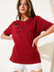 T-Shirt mit Sternen- und Steinverzierungen, burgunderrot