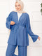- Ürün Yazlık.Ürün tunik ve pantolon olmak üzere iki parçadan oluşmaktadır. Tunik belden tünel bağcıklıdır pantolon belden lastiklidir.