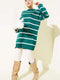 Stricktunika mit Rundhalsausschnitt, horizontal gestreift, Marineblau