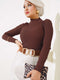 Elastischer Rippstrickpullover Kastanie