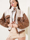 NamePlüschmantel mit Lederbesatz und Taschen, hellbraun