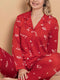 Pyjama-Set, rot, mit Hemdkragenmuster, Detaildetails