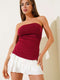 Trägerlose Bluse mit Seitenschlitz, bordeauxrot