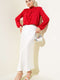 Sandy Bluse mit Wasserfallausschnitt und gepolsterten Schultern in Rot