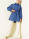 Indigoblauer Trenchcoat mit Kapuze und Gürtel
