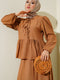 Halb geknöpfter, geschnürter Zweiteiler mit Rock, Farbe Latte