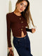| Name | Braune Bluse mit Schlitz und Korsettmuster, langärmelig |