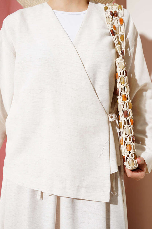 Linen Two Piece Set with Side Rope Tie Skirt Stone