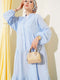 | Name | Grandad Collar Buttoned Floor Dress Blue |