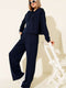 Hooded Two-Piece Set with Eyelet Detail, Navy Blue
