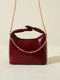 Snap Handle Chain Strap Patent Leather Bag Burgundy