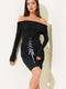 Boat Neck Eyelet Midi Dress Black