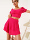 Square Neck, Ruffled Skirt, and Waffle Two-Piece Set, Fuchsia
