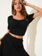 Square Neck, Ruffled Skirt, Waffle Two-Piece Set, Black