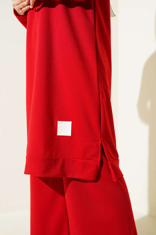 | Name | Embroidered Wide Leg Two Piece Suit Red |