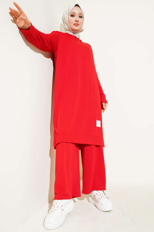 Embroidered Wide Leg Two Piece Suit Red
