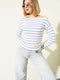 Horizontal Striped Boat Neck Blouse Ice Blue