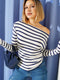 | Name | Horizontal Striped Boat Neck Blouse Navy Blue |