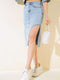 Front Slit Short Denim Skirt Light Snow