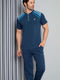 Shoulder Striped Short Sleeve Men's Pajama Set Indigo