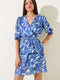 Belted V-Neck Satin Midi Dress Indigo