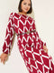 Asymmetrical Patterned Belted Dress Burgundy