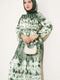 Batik Pattern Pleated Belted Dress Khaki