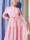 Buttoned Tree Bark Dress with Waist Tunnel and Pink