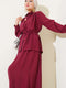 Hidden Button Belted Skirted Two Piece Suit Burgundy