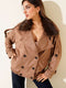 | Name | Latte Bomber Jacket with Fur Collar Detail |
