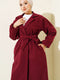 Burgundy Pocketed, Belted, Double-Breasted Kaşe Coat