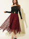 Asymmetric Floral Tulle Midi Skirt Burgundy
