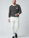 Patterned Polo Collar Knitted Men's Sweatshirt, Ecru