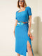 NameSquare Neck Crinkle Midi Dress in Navy Blue