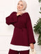 Mobile Belted Sleeved Folding Detail Oyşo Set Burgundy