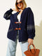 Navy Blue Embroidered Cardigan with Drawstring