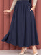 Buy Elastic Waistband Pocketed Tencel Skirt Navy Blue