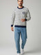 Men's Patterned Polo Collar Knitted Sweatshirt Navy Blue