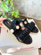 Flexible Strap Pearl Buckle Detailed Sandal Slippers Black