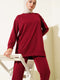 Basic Two-Piece Set with Emblem Detailing - Burgundy