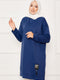 Emblem Detailed Crew Neck Sweat Tunic Indigo