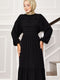 NameSelf-Belted Waist Ribbed Detailed Dress Black