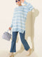 Crew Neck Horizontal Striped Knit Tunic Blue