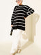 | Name | Crew Neck Horizontal Striped Knit Tunic Black |